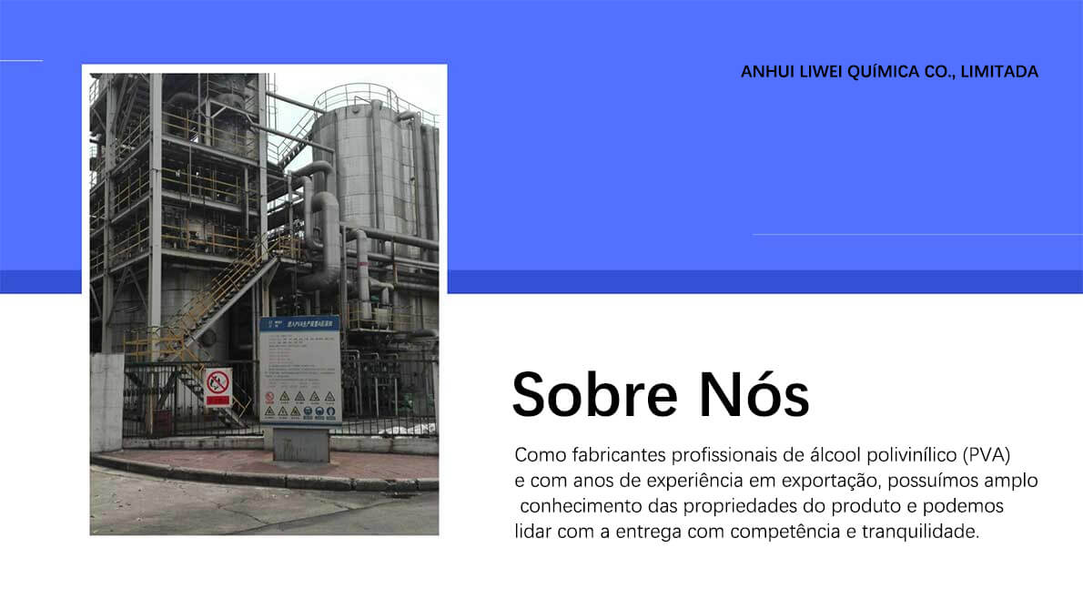 A Liwei PVA é uma das 10 maiores fábricas de PVA e uma das 100 empresas mais fortes da província de Anhui. Em 2010, a Liwei PVA foi avaliada como uma empresa avançada e de alta tecnologia. Lidamos principalmente com álcool polivinílico, PVA, fibra de PVA e matérias-primas para a produção de PVA, como acetato de vinila.