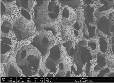 A esponja de PVA é branca, limpa, uniforme, confortável e altamente flexível, podendo ser amplamente utilizada para esponja hemostática expansiva de PVA, esponja de absorção de líquidos e esponja de PVA para terapia de feridas por pressão negativa. O processo de produção é aplicado por meio de processo de espumação a gás limpo e tecnologia de separação de fases, portanto, a esponja de PVA apresenta formato de bolha redondo e poroso ao microscópio por MEV (microscópio eletrônico de varredura), e a parede do poro apresenta características óbvias de "bolha", que são essencialmente diferentes da esponja produzida pelo processo de enchimento de amido. Os desempenhos do produto, como tamanho dos poros, densidade, flexibilidade e resistência à tração, podem ser bem controlados.